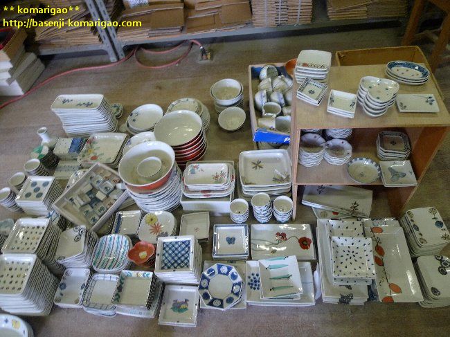 多分、あぁ~なんとなく全部似てるねぇーって思われると思いますが・・・そのうちのひとつ、九谷青窯さんの窯元・作業所、器たちはこんな感じ(笑)