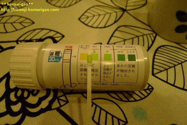クーパーさんに来ているバセンジーちゃんでも、尿に糖が出てるのに