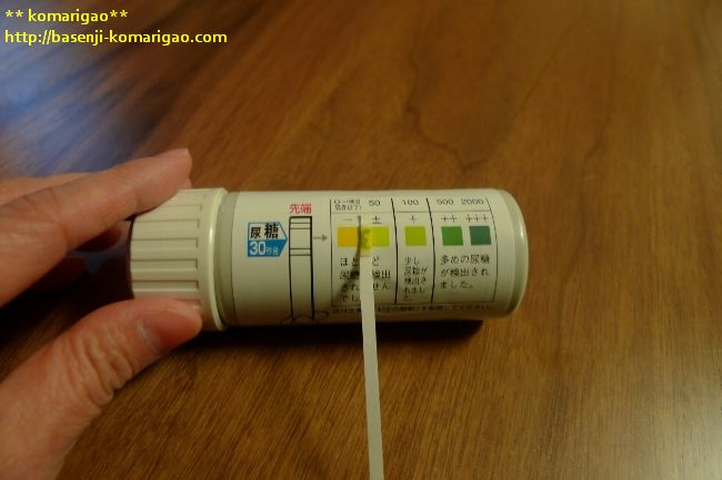 筒の左から2つの色は『ほとんど尿糖は検出されず』の位置ですので