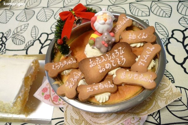 こちらは先日みんなでクリスマス会をしたときのワンコケーキ・・・